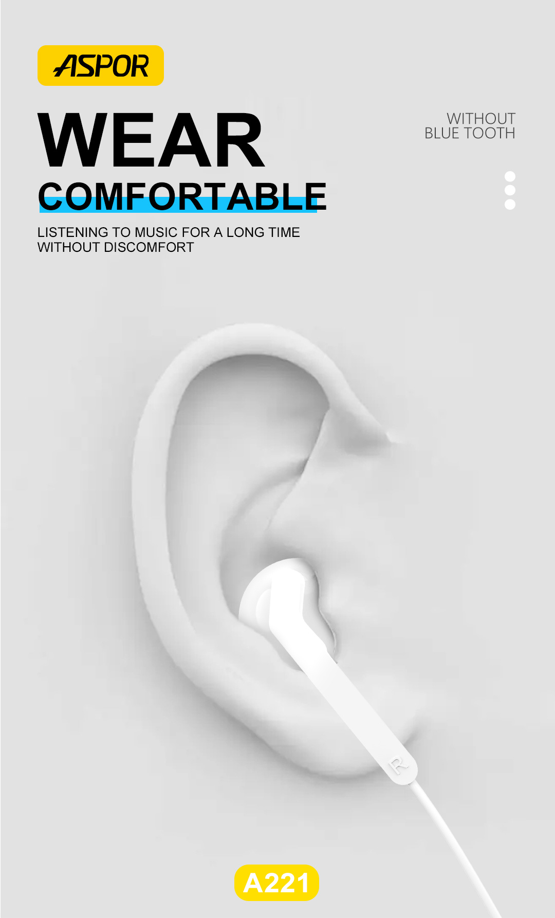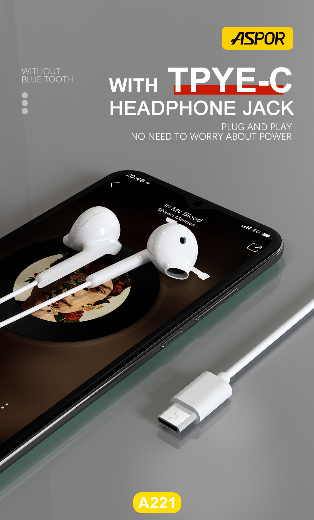产品简介:Model:A221 Length: 1.2m TPE flat cable Function: 14mm dynamic earphone Headphone jack: Type-c Impedance: 16Ω±15% Sensitivity:42±3dB Frequency response: 20hz-20khz