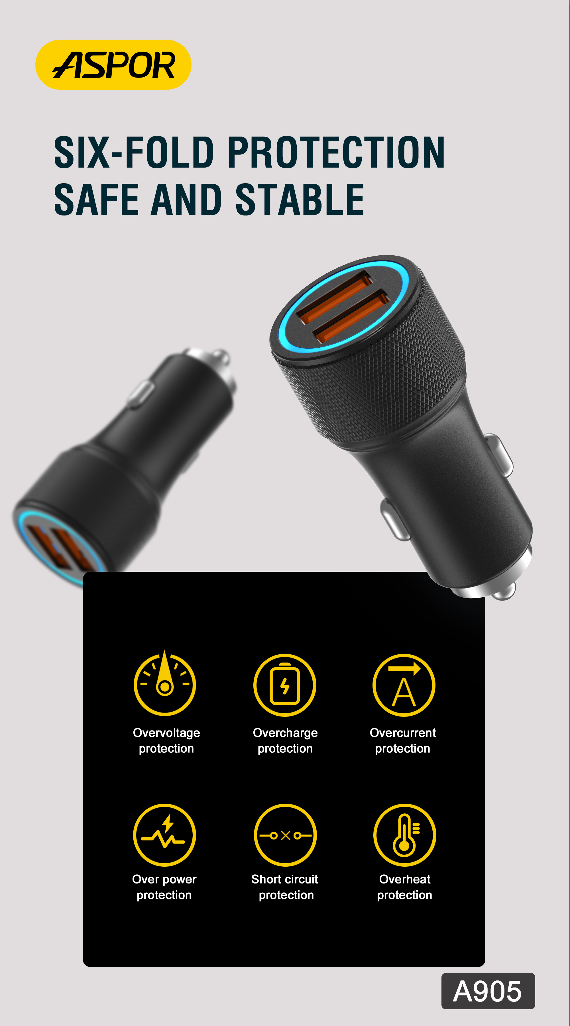 产品简介:Mode:A905 38W FAST CHARGING QC3.0 USB FAST CHARGING