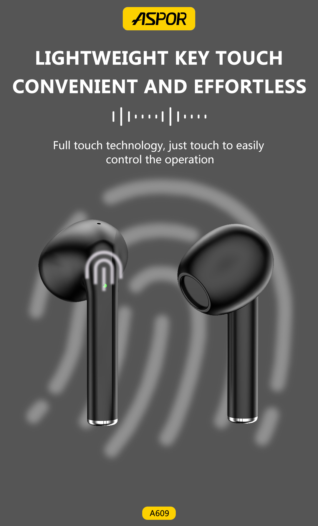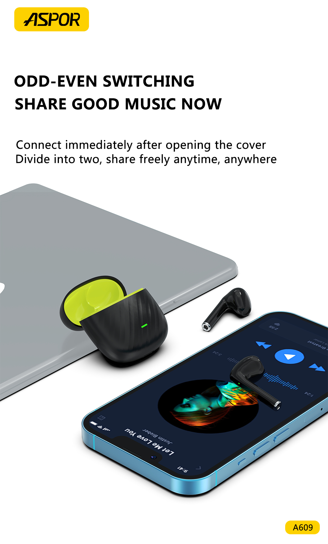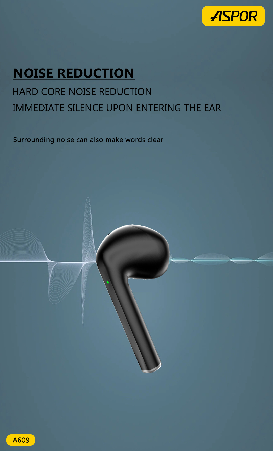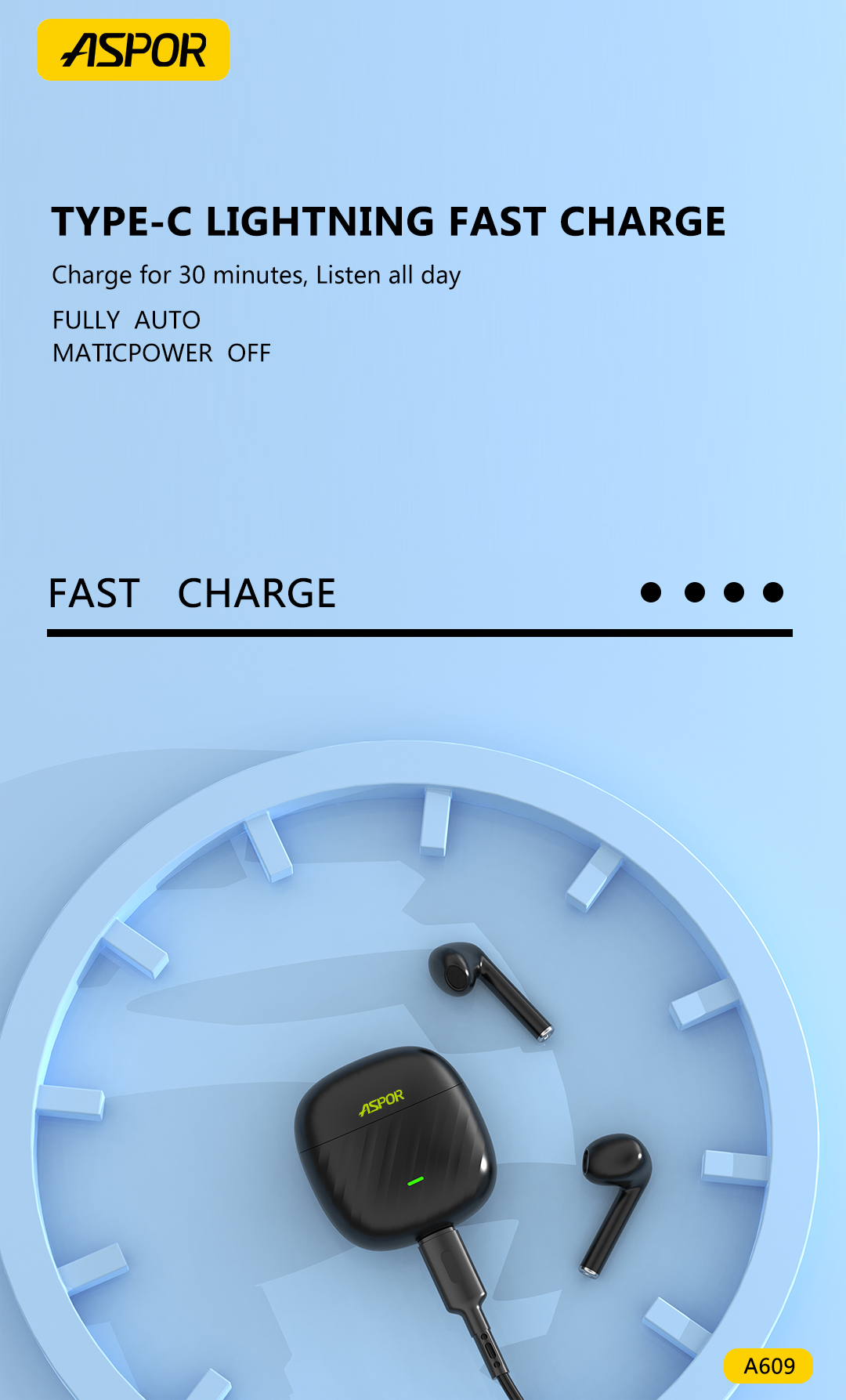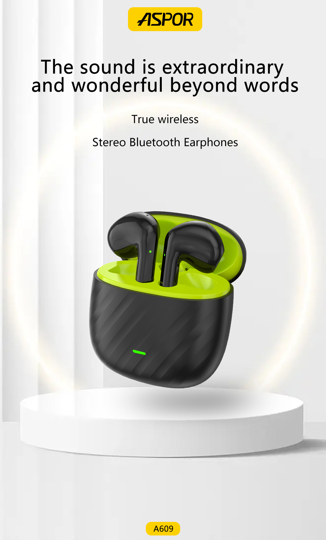 产品简介:Model:A609 版本:V5.3 传输距离:10M 播放时间:18 hours 充电时间:1.5 hours 充电盒电池容量:280mAh 充电端口:USB-C