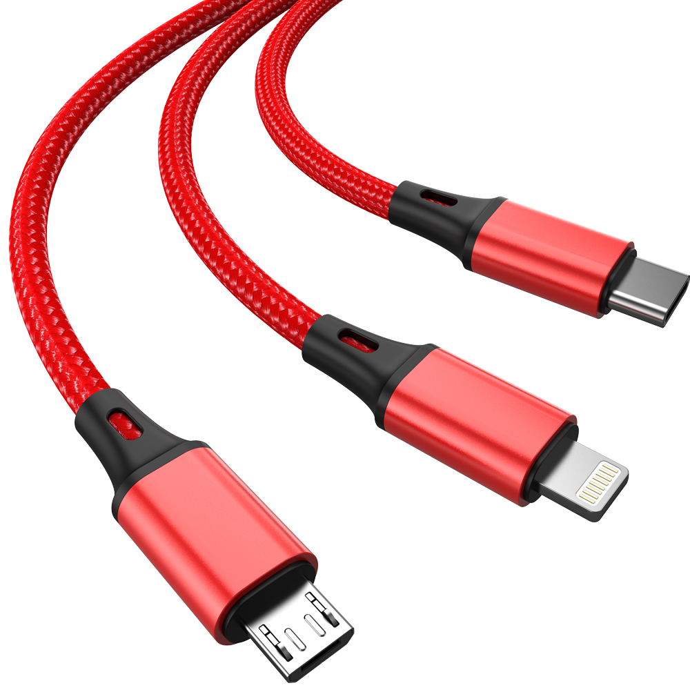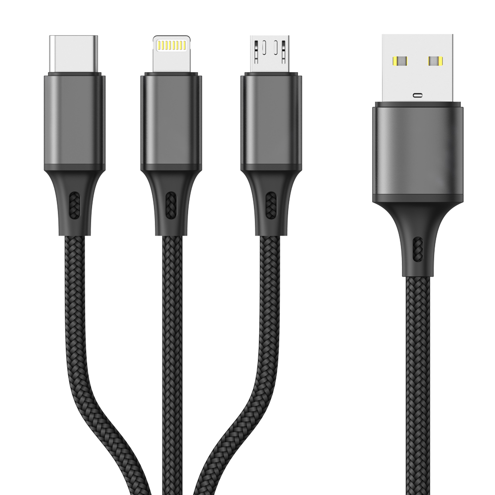 产品简介:名 称/Name:3 IN 1fast charger data cable 颜 色/Color:Black\Red 电 流/Current:3 A 线 芯/Core:镀锡铜/Tinned copper 材 质/Material:Metal and ABS
