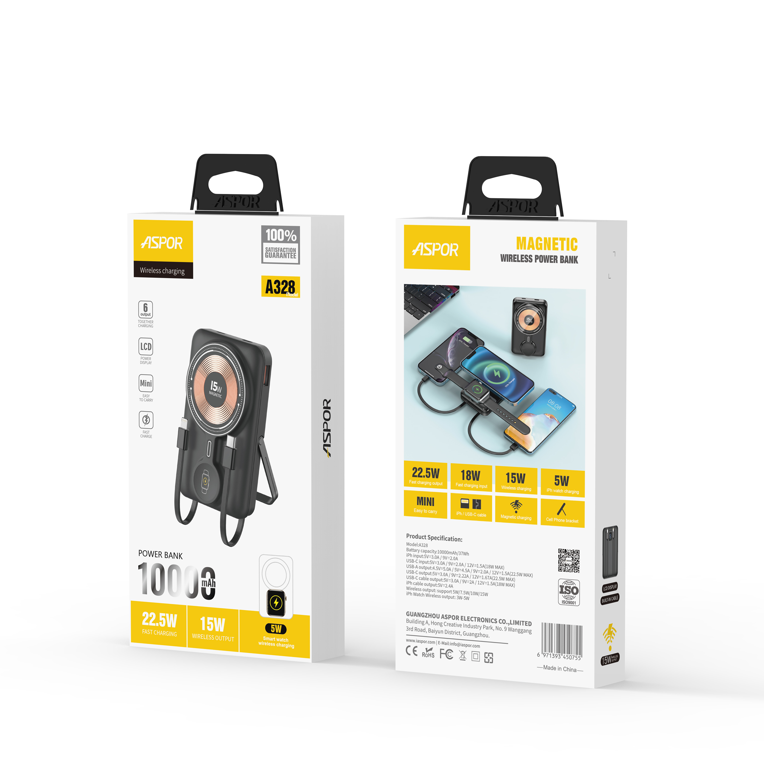 USB-A 输出:9V/2.0A 12V/1.5A 5V/4.5A 4.5V/5.0A(22.5W MAX)