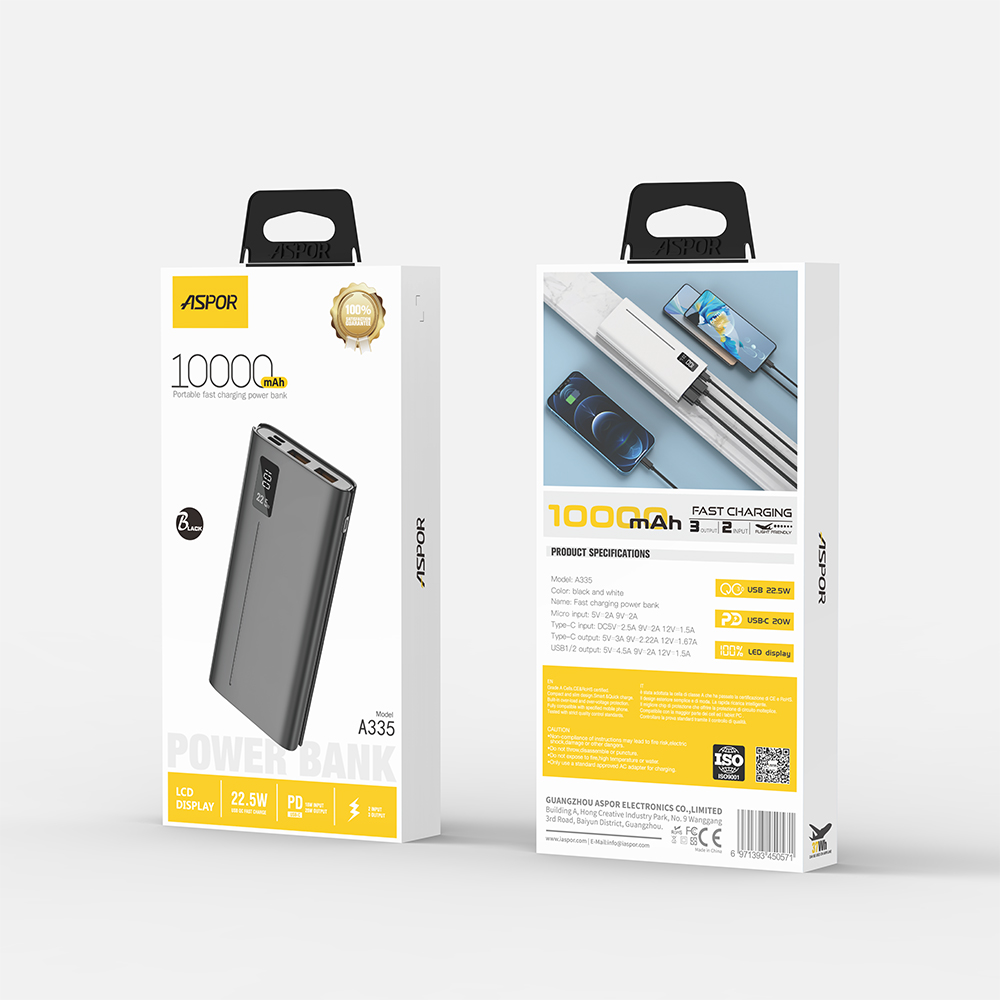 产品简介:Model:A335 Micro 输入:DC 5V/2A 9V/2A TYPE-C 输入:DC 5V/2.5A 9V/2A 12V/1.5A TYPE-C 输出:DC 5V/3A 9V/2.22A 12V/1.67A USB A1 输出:DC 5V/4.5A 9V/2A 12V/1.5A USB A2 输出:DC 5V/4.5A 9V/2A 12V/1.5A