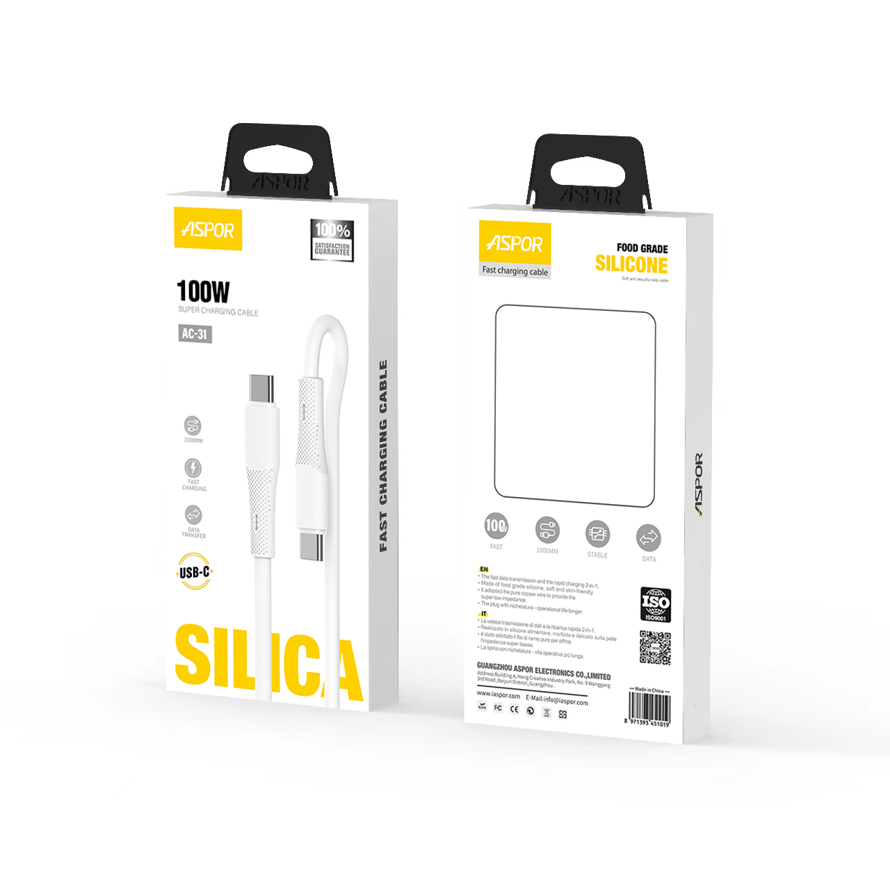 产品简介:Model:AC-31(TYPE-C TO TYPE-C)/AC-32(TYPE-C TO iPh) Wire length:1000MM 电流:3A(MAX) 颜色:白色 / 黑色