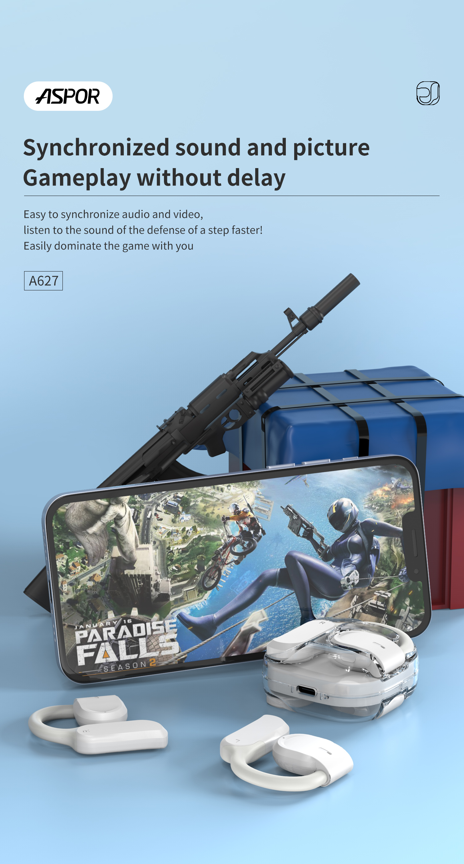 产品简介:Model: A627 版本:V5.3 传输距离:10M 通话时间:10 hours 充电盒电池容量:300mAh 充电端口:TYPE-C IPX version: 防汗 颜色:黑 / 白