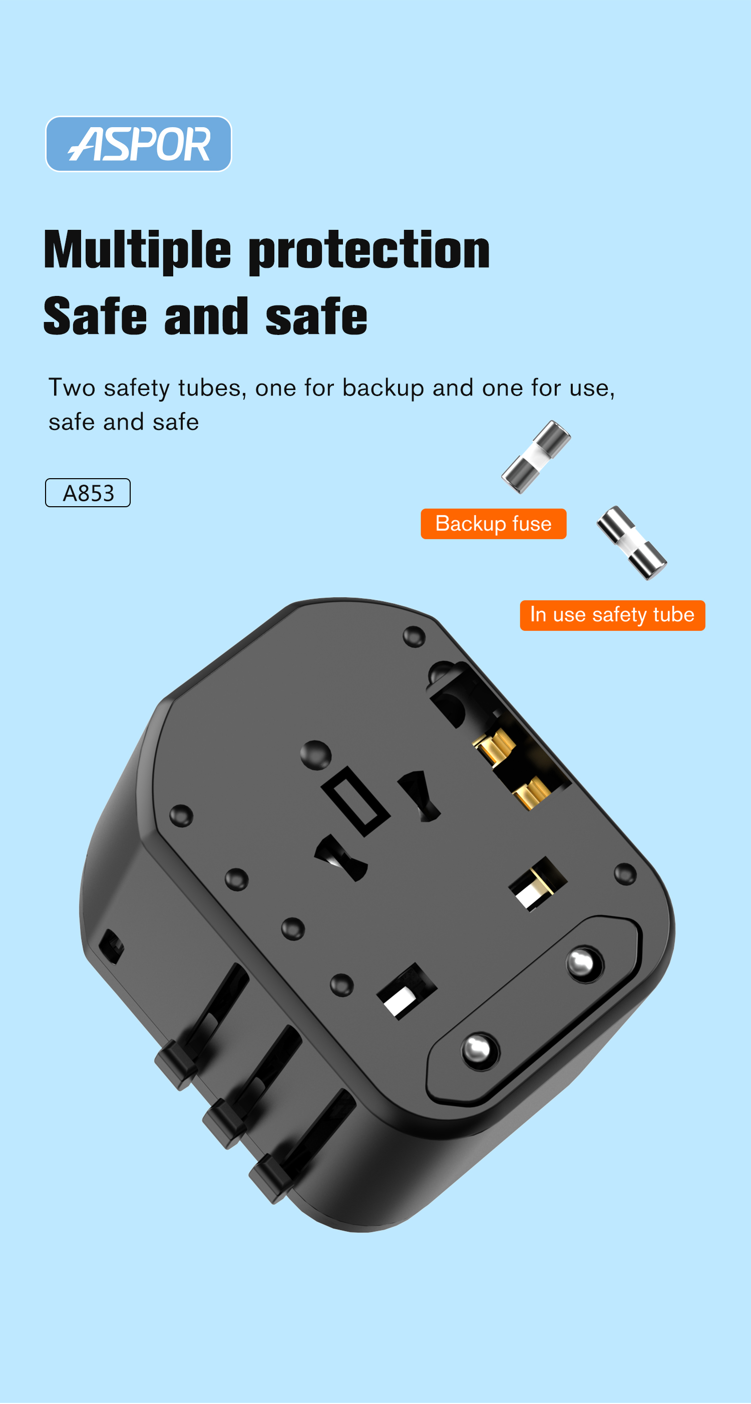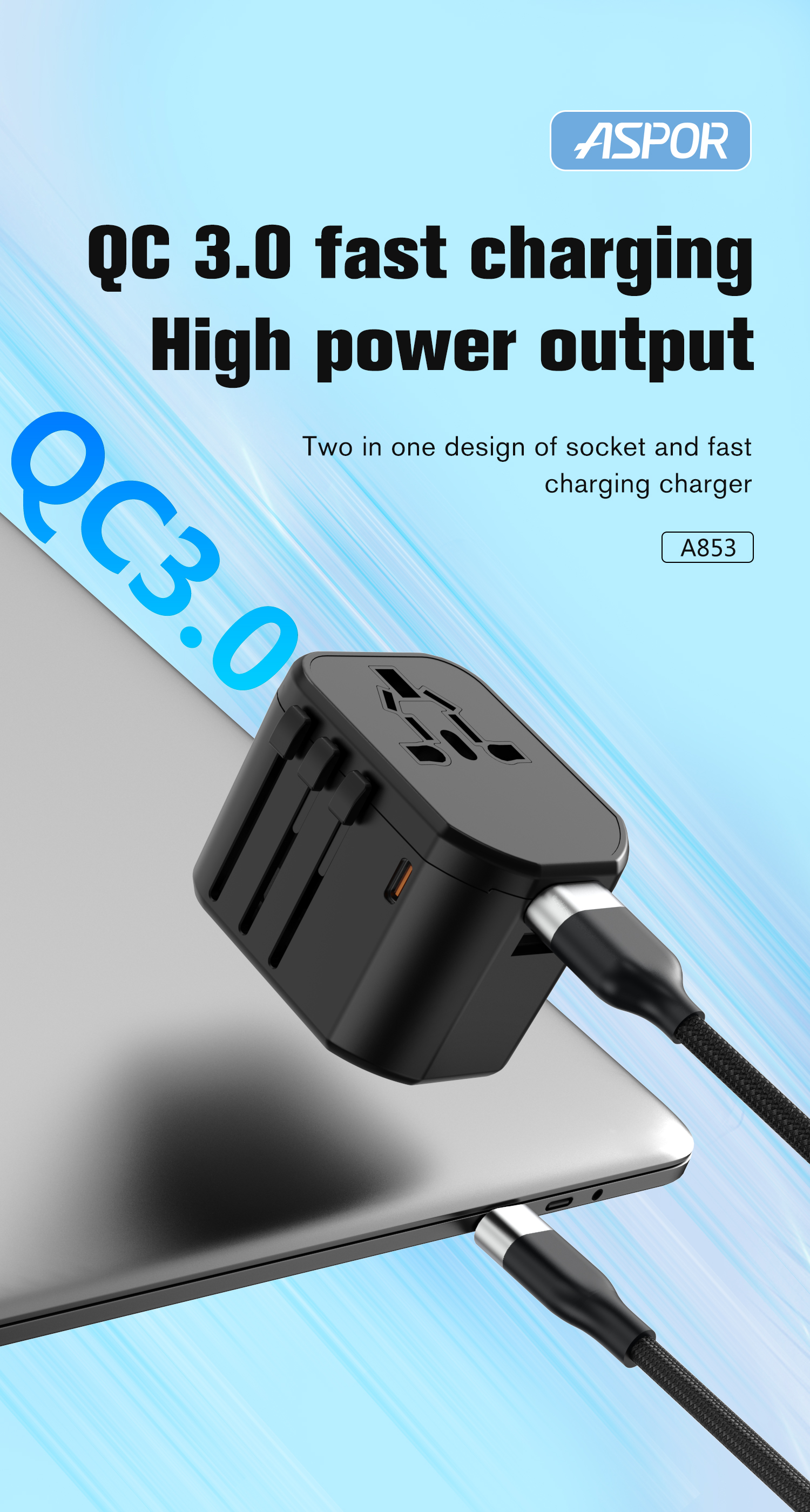 产品简介:Model:A853 USB-C 输出:5V=3A / 9V=2.22A / 12V=1.67A USB-A 输出:5V=3A / 9V=2.22A / 12V=1.67A USB-C +USB-A 输出:5V=3A(MAX) 最大功率:880W AT 110V-1840W AT 230-