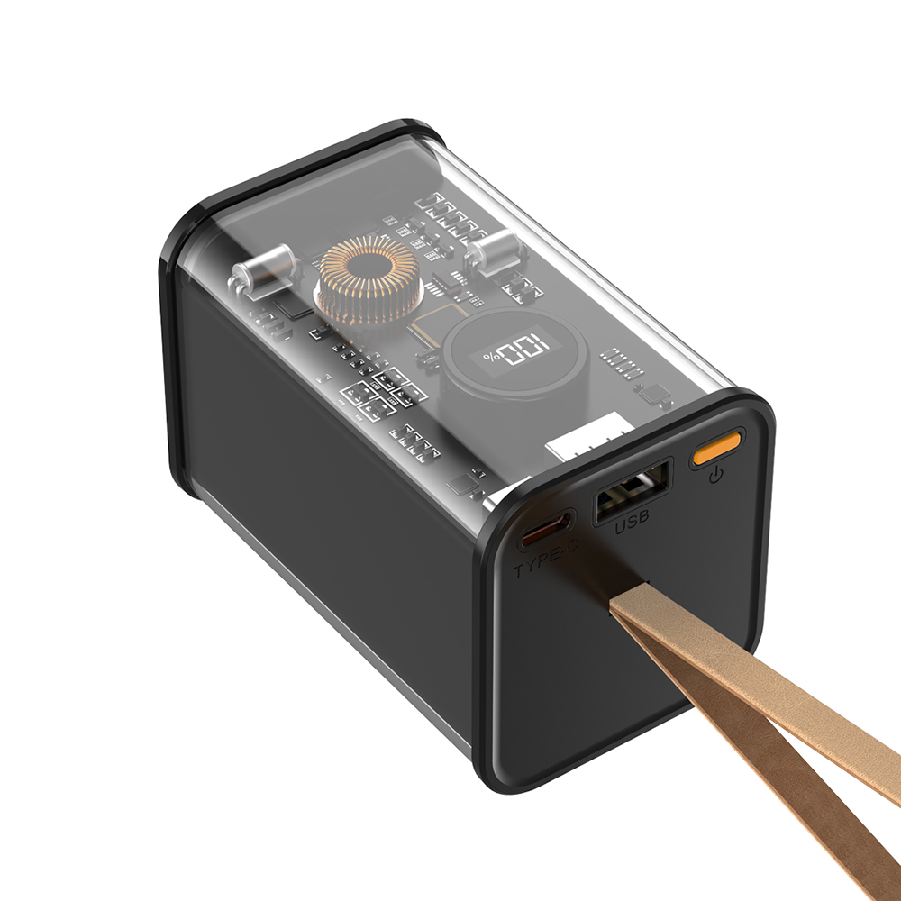 产品简介:Model:A365 Material: ASB+Transparent PC Battery capacity: 20000mAh Color: Black Power display: LED Percentage USB-A OUTPUT: 4.5V-/5A 5V-5.0A