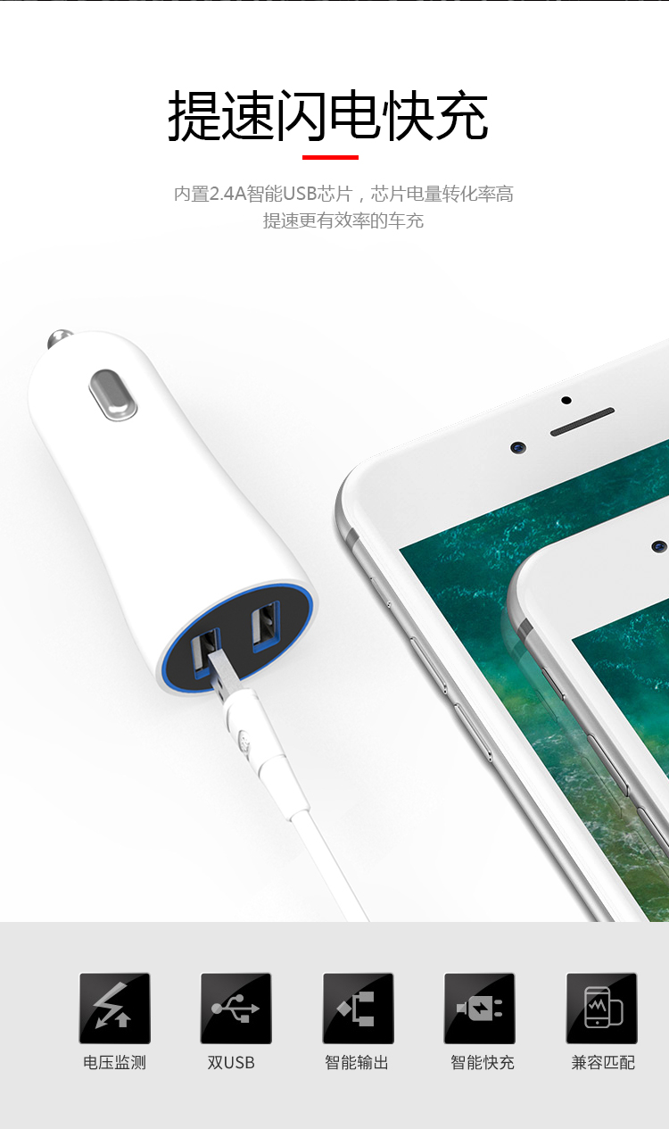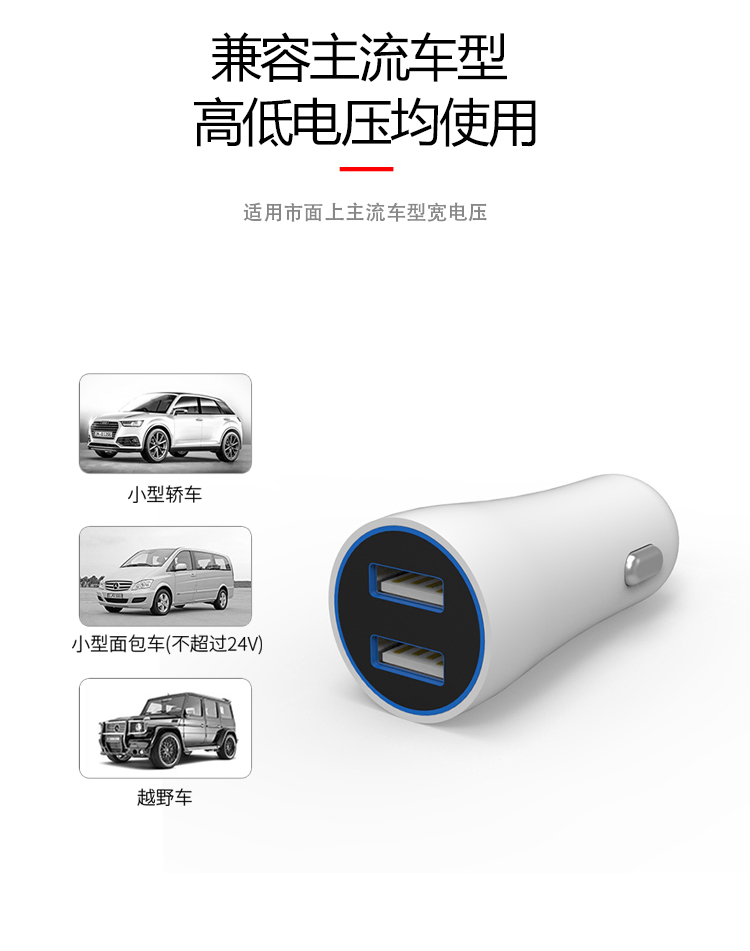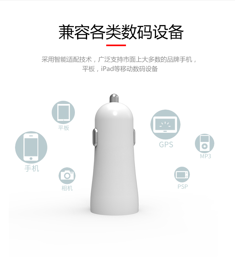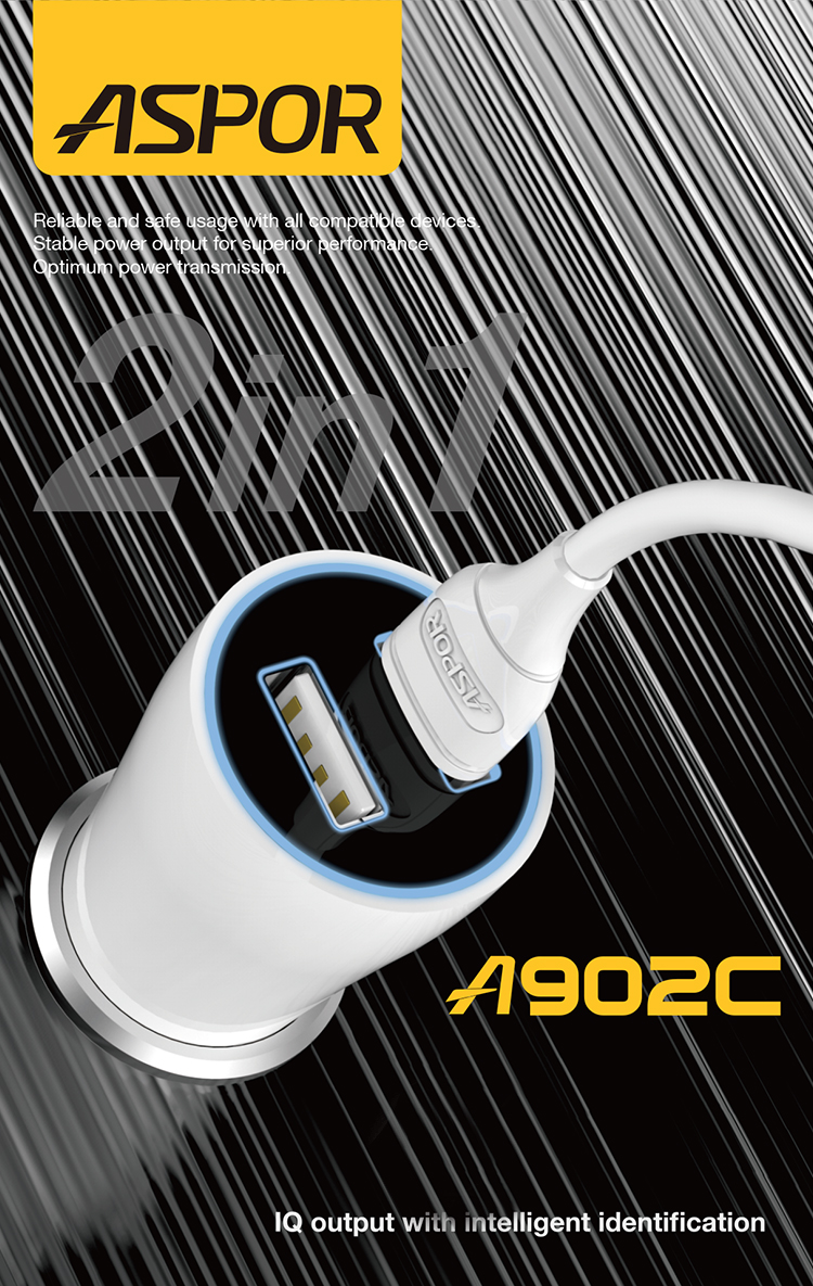 产品简介:Model: A902 Dual-button USB port Use form: car charging