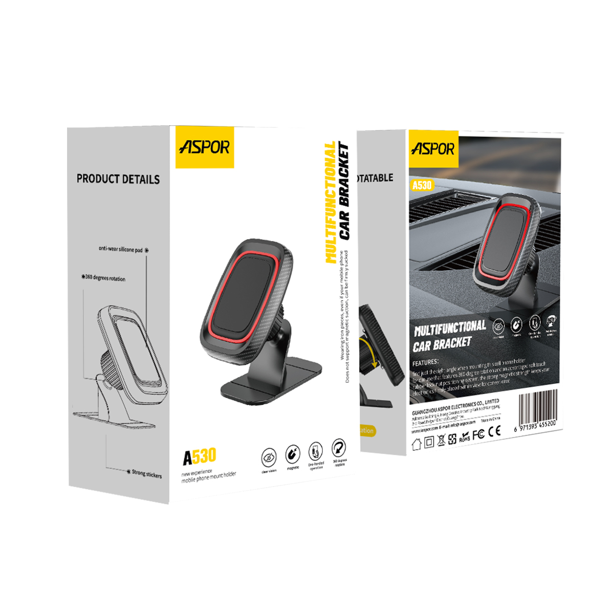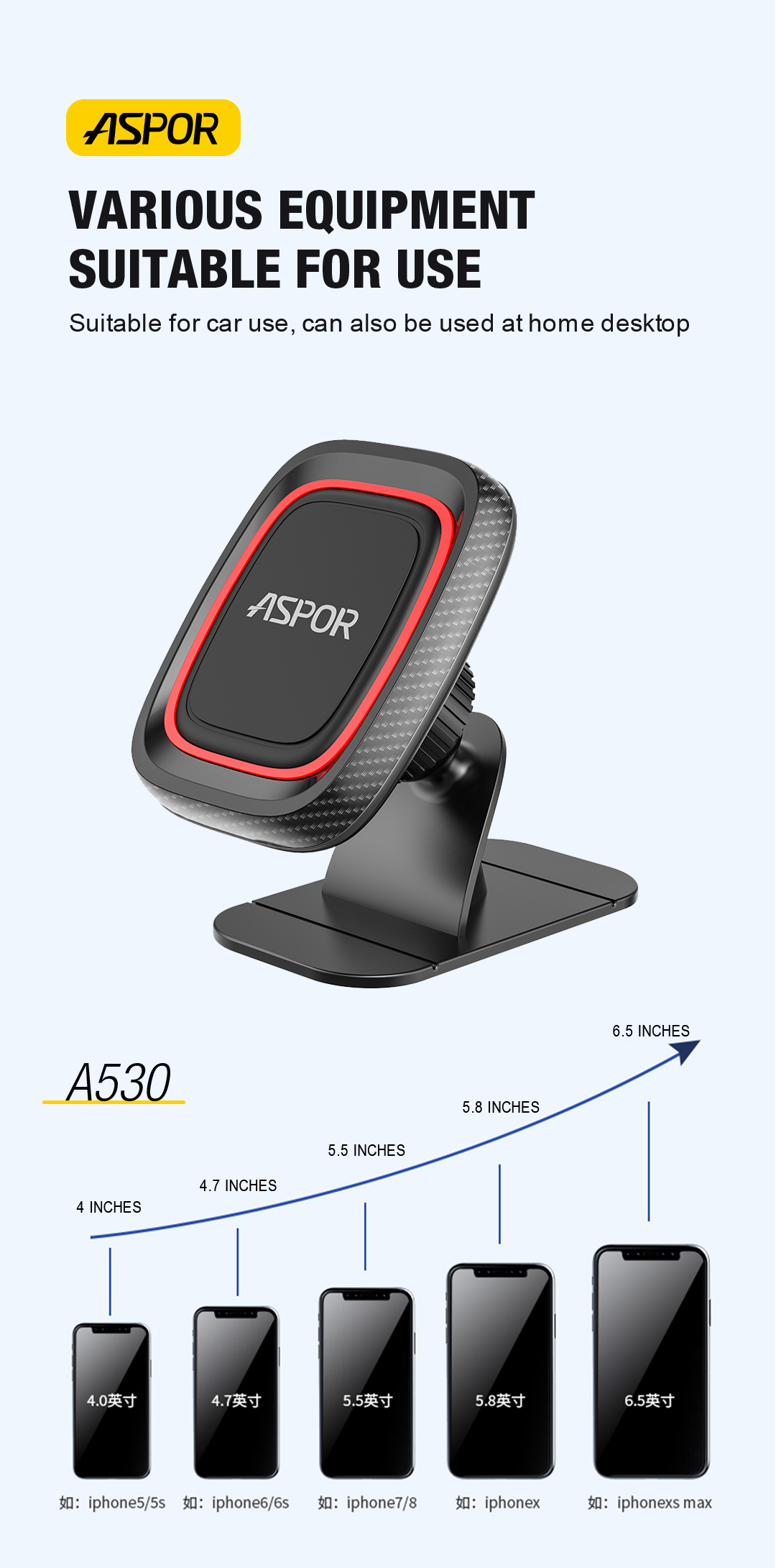 产品简介:Model: A530 Color: Black Material: Plastic+Silicone Material Contain: Car Bracket + Paste lron
