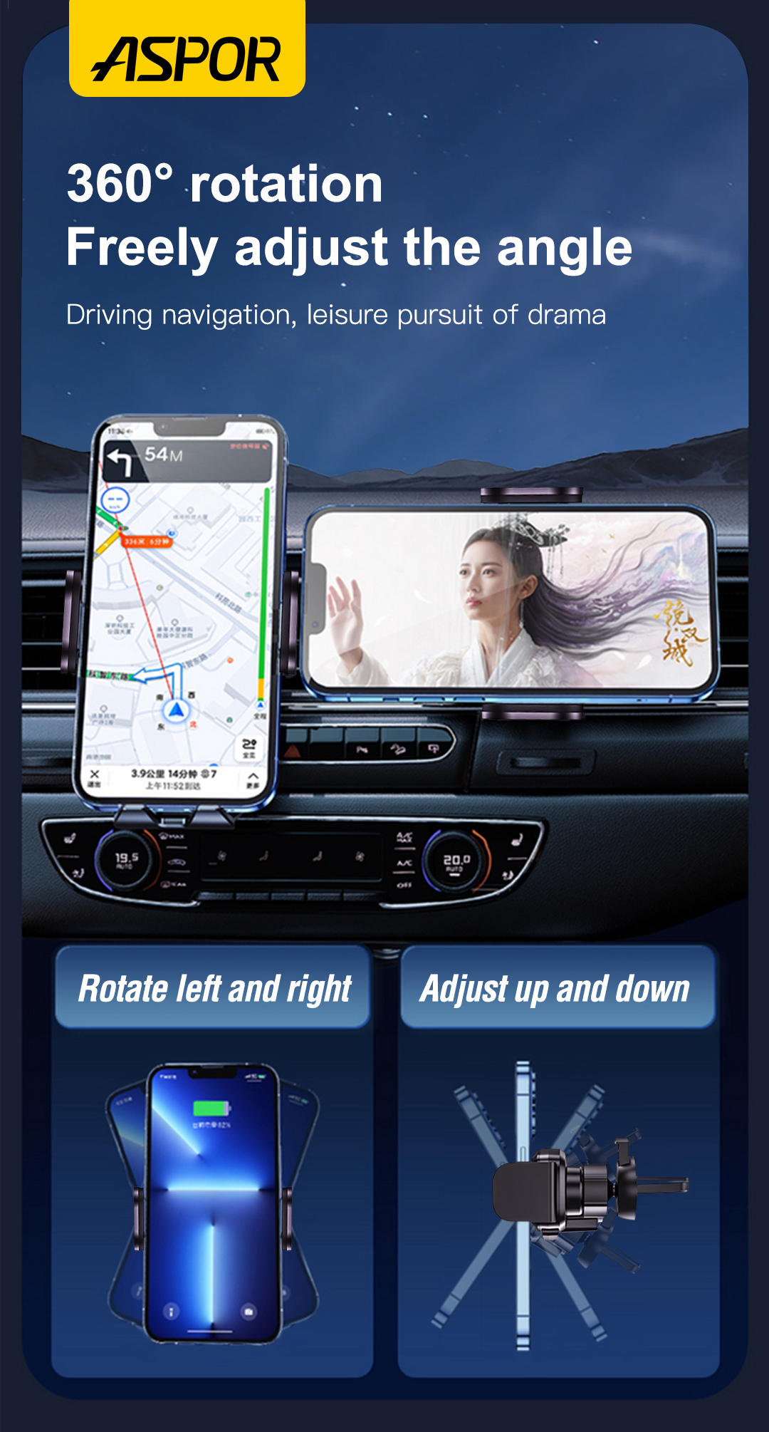 Function usage: 1.When the phone is put down, the gravity sensor button automatically retracts the arms