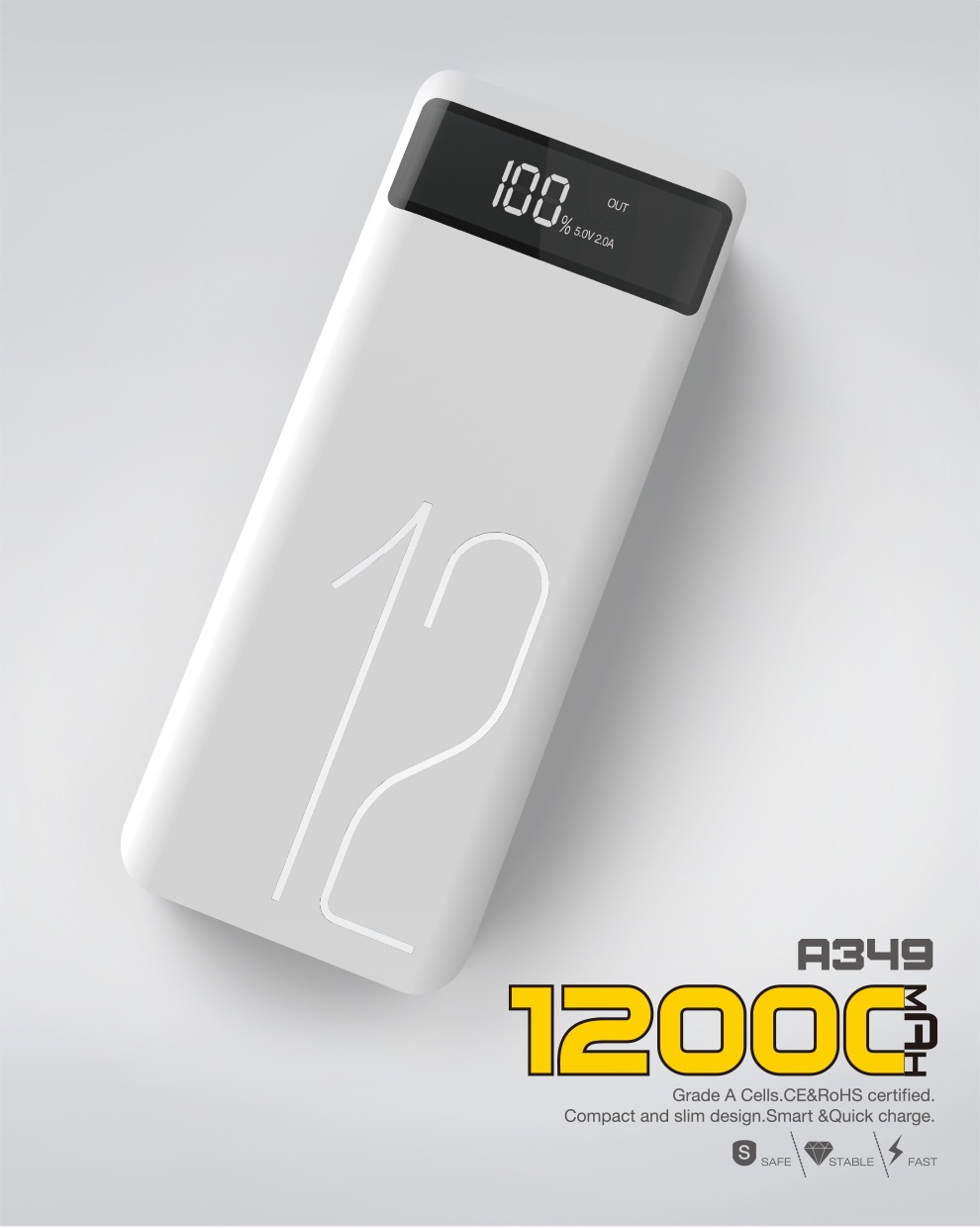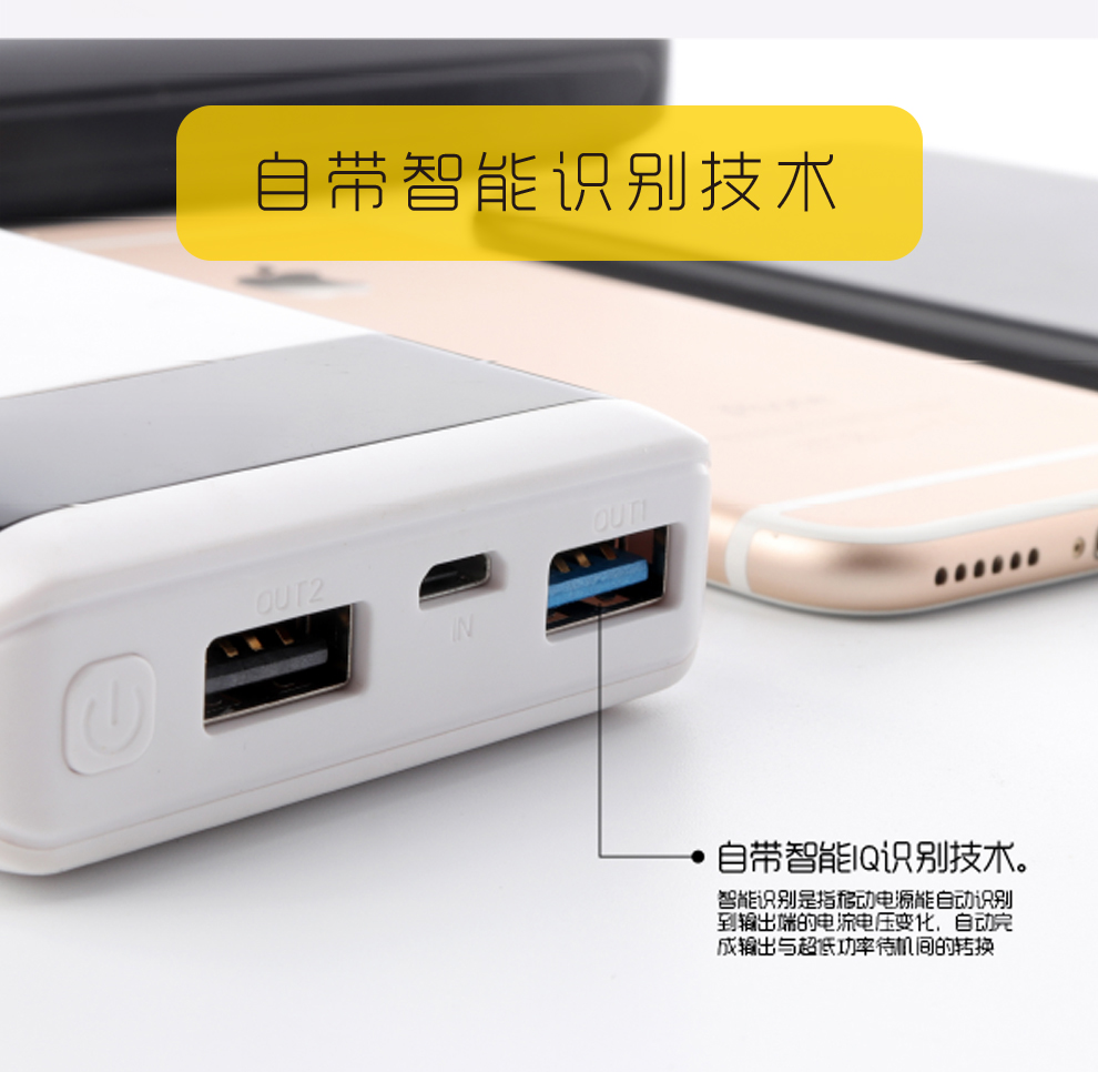 产品简介:Model:A349 Capacity:12000mAh/44.4Wh Input:DC5V-2.0A(OVP) Output1: Total DC 5V-2.4A Output2: Total DC 5V-1.0A