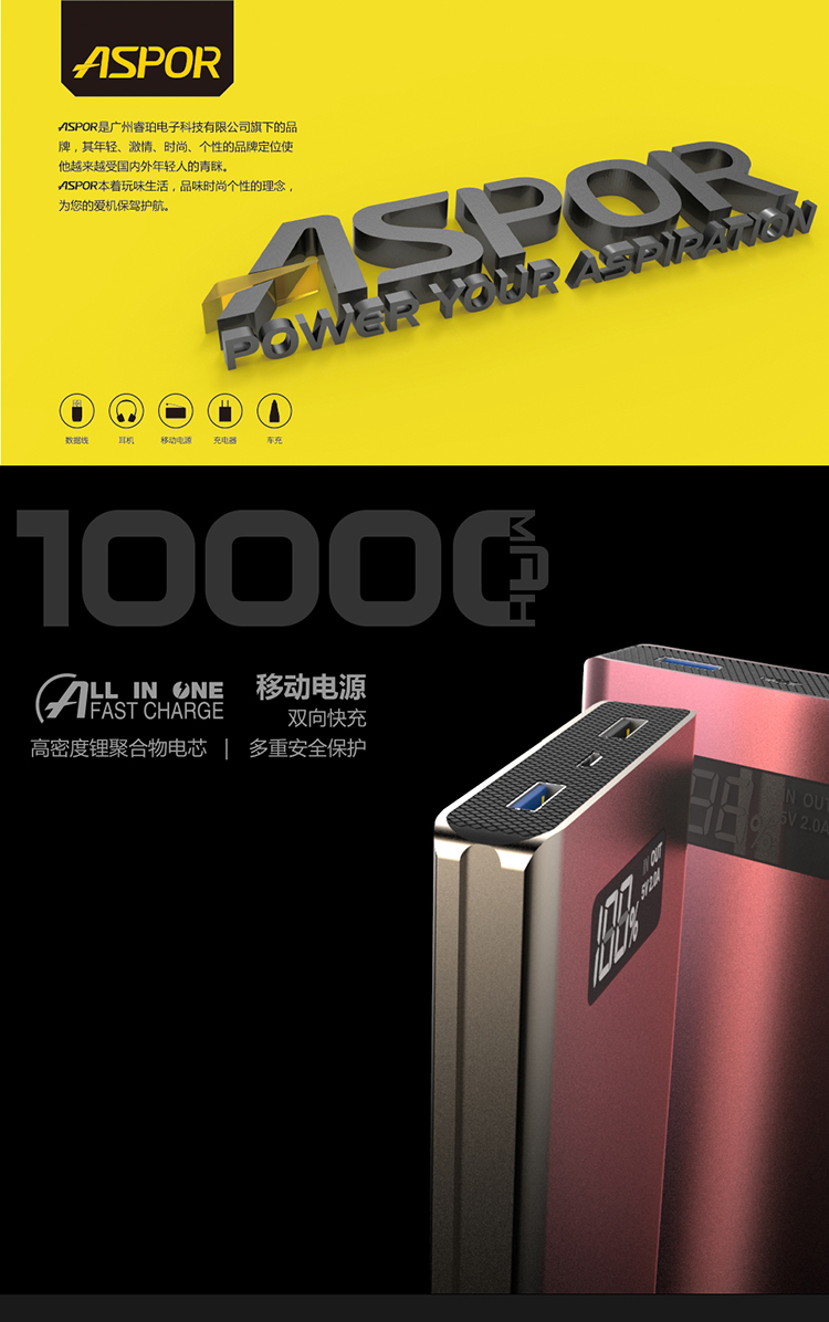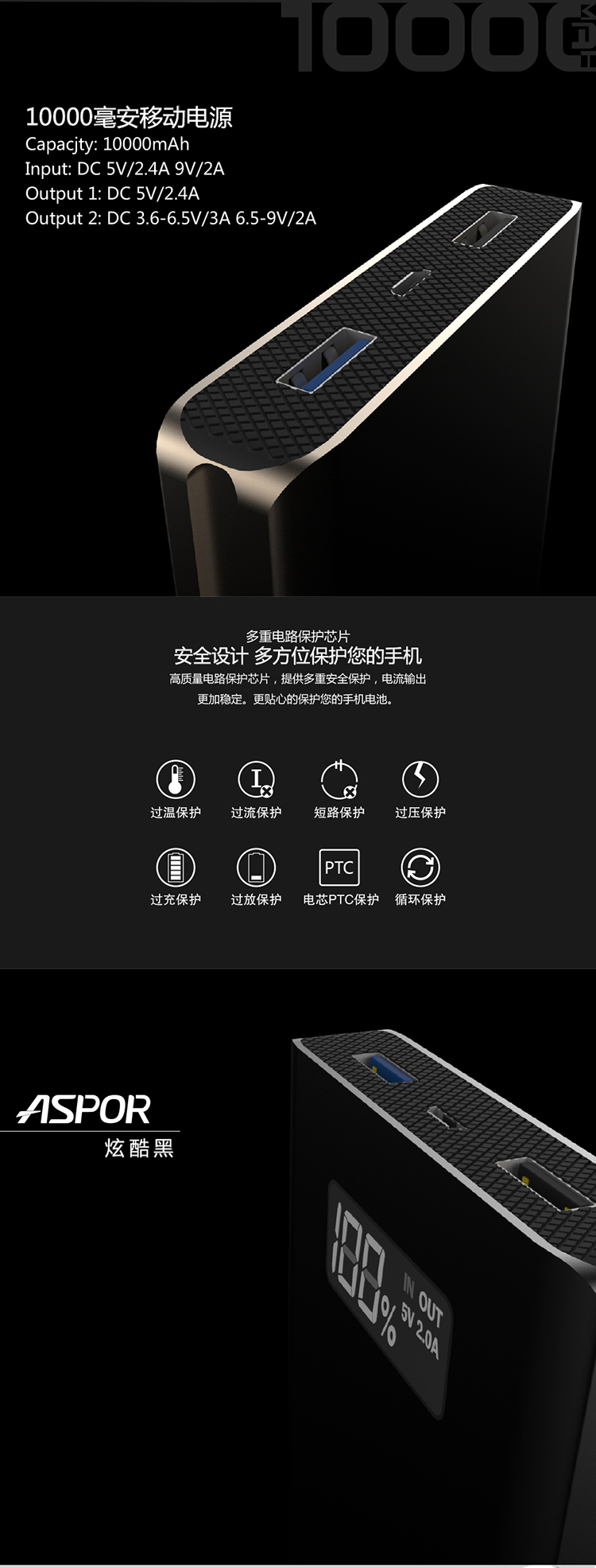 Capacity:10000mAh/37Wh