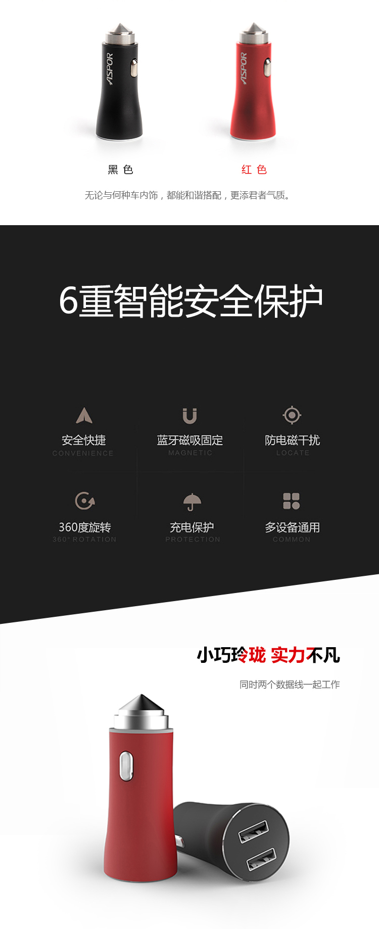 Product introduction:A918Car Charger Input:DC 12-24V | Output:Total DC 5V-3.4A(IQ)