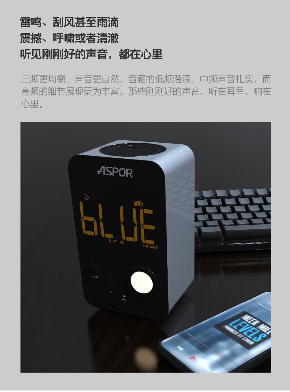 喇叭: 5W 4欧 直径52MM + 低音增幅器(震 膜 )